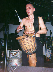 Jester: Surely you didn't bring all of these drums, and homemade musical instruments all the way with you from England. Where did you find all of your material?
